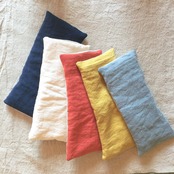 それらをオーガニックコットンで包み、カバーは国内で丁寧に織られた良質で奇麗な色のリネンで製作しています。